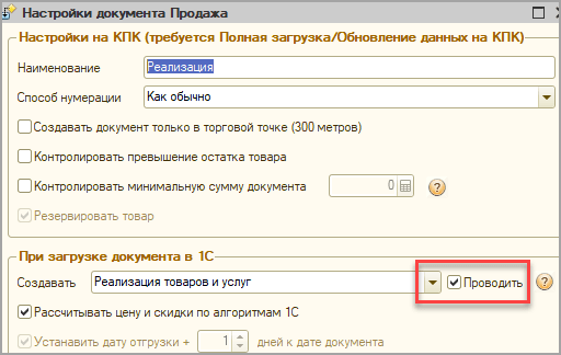 Совет: Включите настройки Выгружать все документы при полной загрузке и Запретить изменять распечатанные документы. Таким образом, торговые агенты не смогут случайно стереть документы при полной загрузке, а также изменить на КПК распечатанные документы перед выгрузкой в офис.