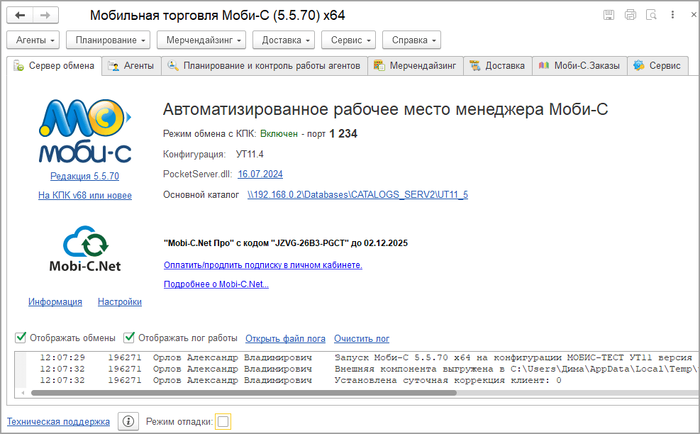 Важно! Включение режима отладки может значительно замедлить обмен данными. Ставьте галку только если вам нужна информация для поиска ошибок в работе Моби-С.