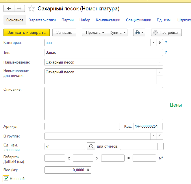 В карточке товара установлена галка Весовой.