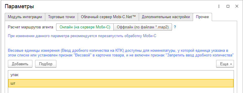 Единица добавлена в список в настройках Моби-С, вкладка Сервис ⇒ кнопка Параметры ⇒ вкладка Прочее.